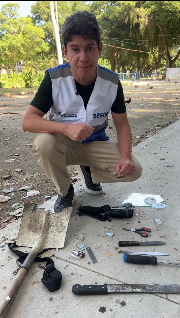 Nesta quarta-feira, uma operação integrada de segurança, realizada pelo Governo do Estado do RJ, através do 2º BPM (Botafogo) e a Superintendência Estadual da Zona Sul e Centro (SEGOV), apreendeu um simulacro de arma de fogo, facões, facas, tesoura, estiletes e outros objetos perfurantes, durante uma ação realizada na Praça Marinha do Brasil, na Praia de Botafogo.