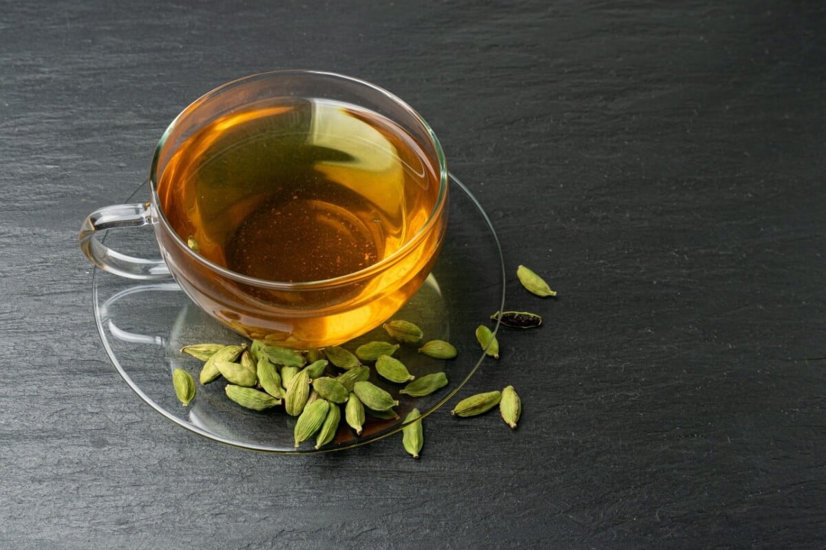 Quebre levemente as vagens de cardamomo com um pilão ou o fundo de uma colher para liberar o aroma e os óleos. Em fogo baixo, ferva a água em um bule e adicione as vagens de cardamomo. Deixe cozinhar por 5 a 7 minutos. Coe o chá em uma xícara e adoce com mel. Sirva em seguida.