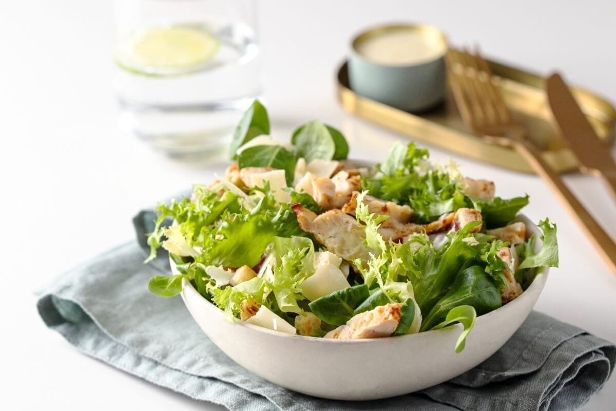 Salada de rúcula com alface e frango