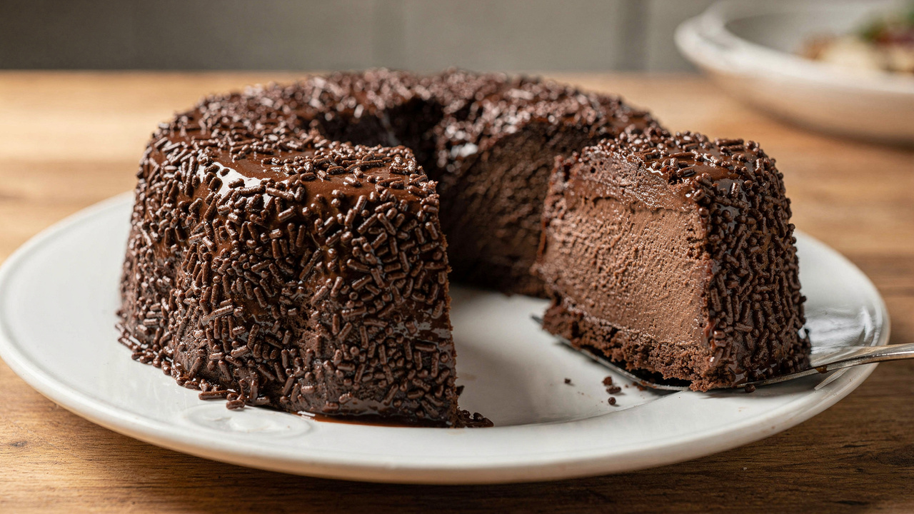 A receita é simples e econômica, usando itens fáceis de encontrar. A margarina entra para dar brilho e ajudar a desenformar, e o granulado finaliza com visual clássico.