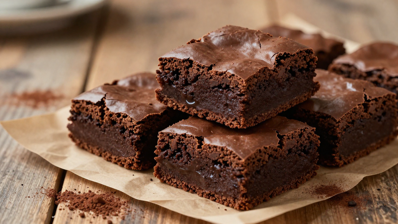Textura craquelada e o interior úmido, transformando ingredientes simples em um brownie econômico de alta aceitação comercial.