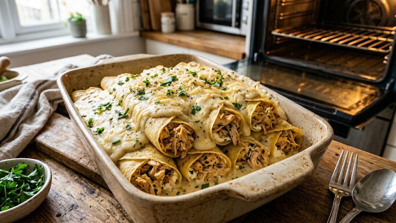 A panqueca de frango desfiado é daquelas receitas que unem massa macia, recheio cremoso e aquele visual gratinado que sempre chama atenção. Saborosa, prática e muito versátil, ela funciona perfeitamente em almoços de família, jantares caprichados e refeições que pedem algo caseiro e bem servido.