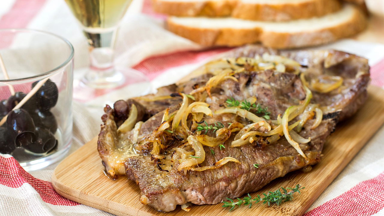 - Bife de panela: com molho encorpado e cebolas caramelizadas