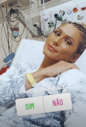 Apresentadora posta foto deitada em cama de hospital e avisa que precisa de férias