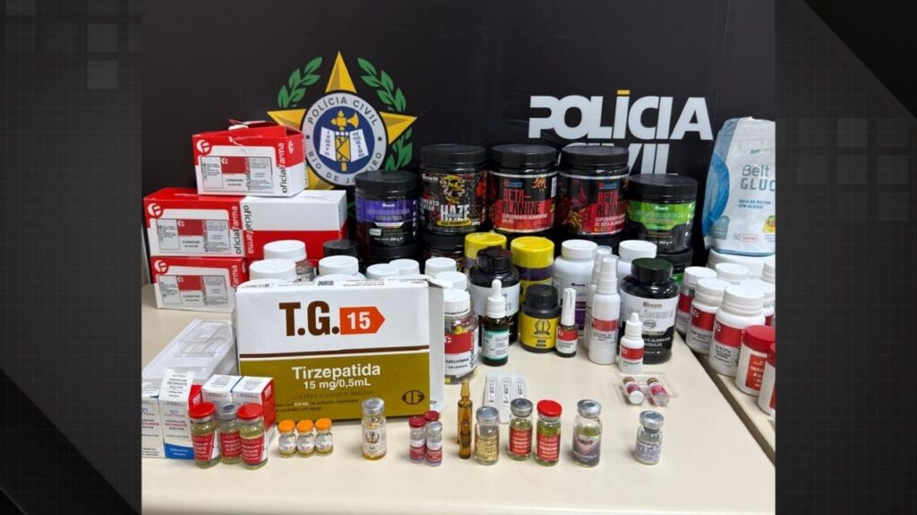 No endereço do casal, agentes cumpriram mandado de busca e apreensão da 1ª Vara das Garantias da Capital e encontraram medicamentos, incluindo ampolas de canetas emagrecedoras, além de suplementos. Dois celulares e dois computadores foram apreendidos.