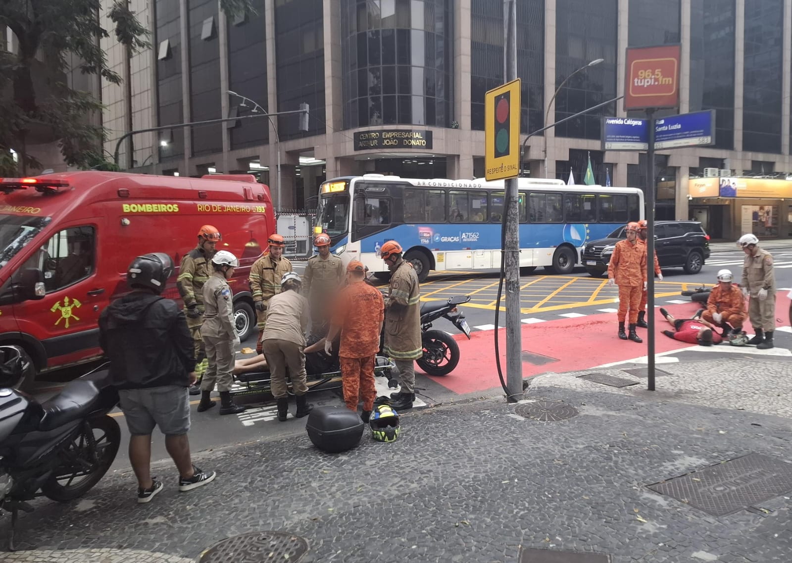 Uma mulher e dois homens ficaram feridos após um acidente entre duas motocicletas na tarde deste domingo (24), na Rua Santa Luzia, no Centro do Rio. A colisão ocorreu por volta das 16h40, nas proximidades do número 651.