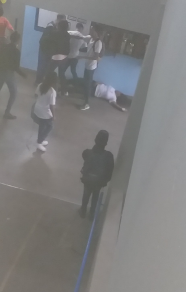 Imagens gravadas por outros alunos mostram a confusão e quando a adolescente é socorrida por uma equipe do Samu.