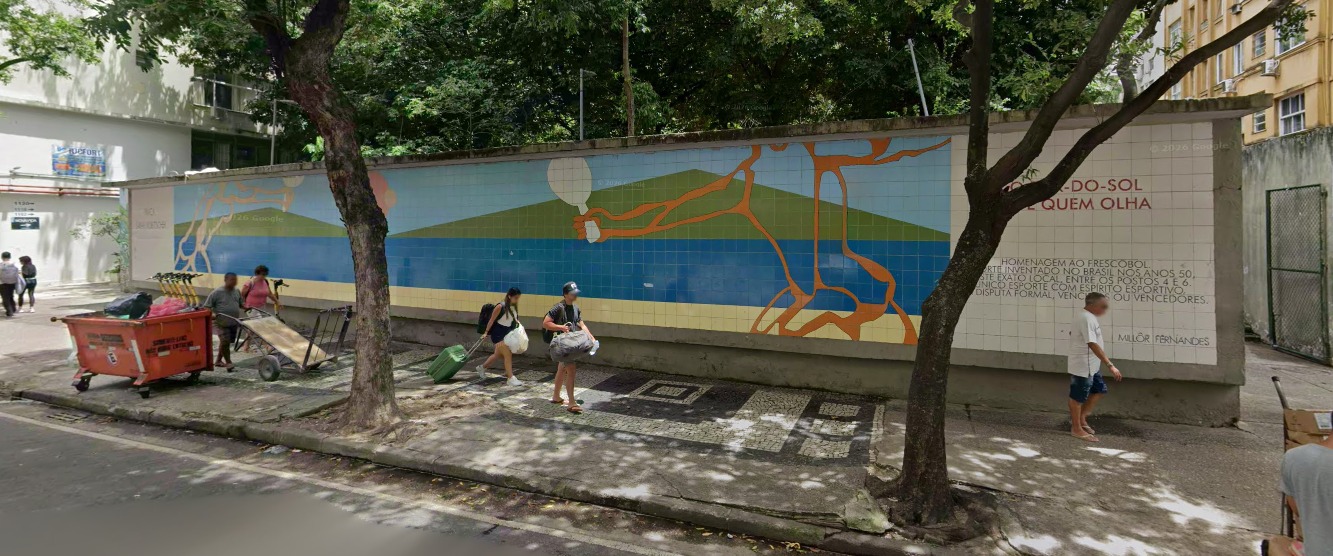 A Praça Sarah Kubitschek, em Copacabana, na Zona Sul, vai ganhar uma nova cara em breve. Na próxima segunda-feira (27), será derrubado o característico muro que ostenta uma pintura de Millôr Fernandes — mas que, por outro lado, é alvo de uma série de reclamações dos moradores do entorno. O impasse será resolvido com a reprodução do mural na parede da vizinha Escola Cócio Barcellos, possibilitando a remoção do muro original e a integração do espaço à calçada.