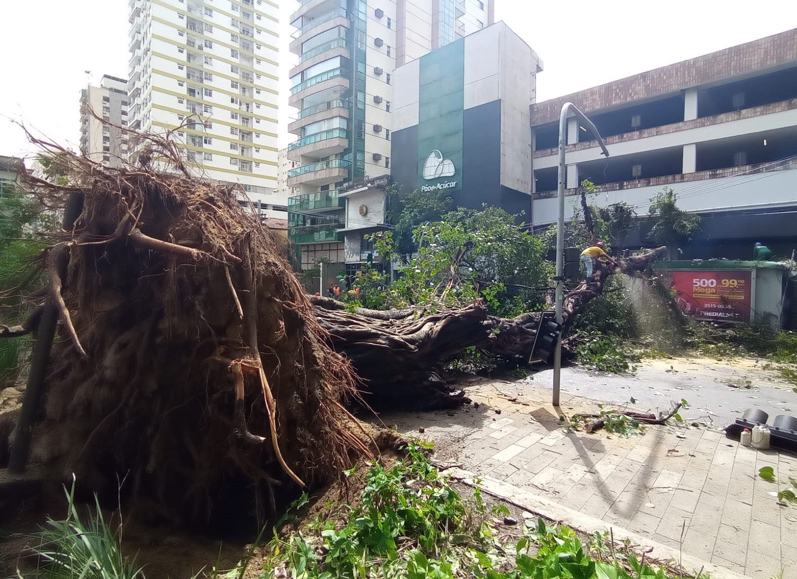 A árvore ainda obstrui a Rua Doutor Paulo Alves, uma das vias que liga o bairro do Ingá à Praia de Icaraí. Alguns moradores da região ficaram sem energia.