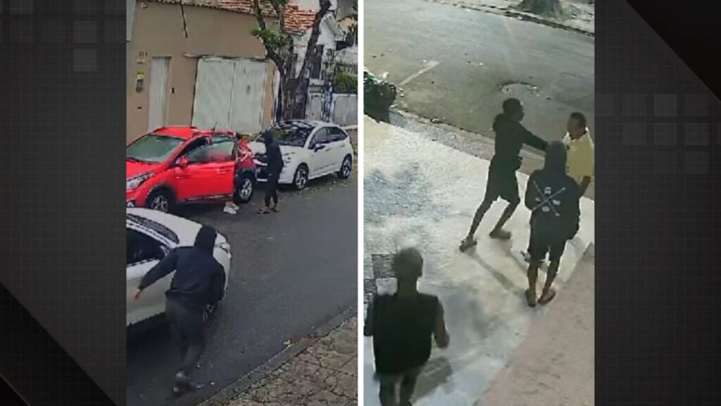 Câmeras também flagraram uma série de roubos que aconteceram durante dez dias na Rua Barão de São Borja, em agosto. Em um dos vídeos, um pedestre é cercado por três bandidos ao passar por um prédio cuja entrada da garagem é recuada na calçada.