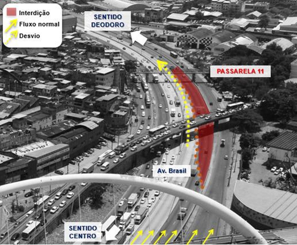 Os motoristas que precisarem passar pela Avenida Brasil, a partir deste sábado (1º), devem ficar atentos. A instalação de uma nova passarela provisória, na altura de Ramos, na Zona Norte do Rio, vai interromper no tráfego na região.
