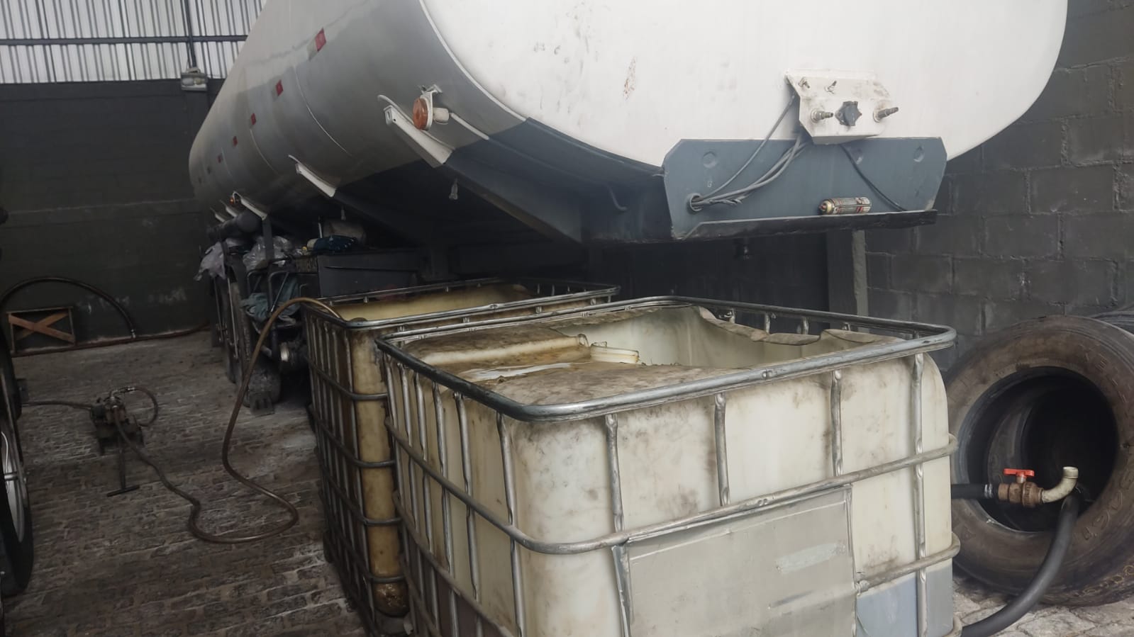 O motorista e os funcionários do estabelecimento foram abordados e constatou-se que havia tanques de armazenamento de combustível no local, não havia CNPJ da suposta empresa e não continha licença ou inscrição estadual.