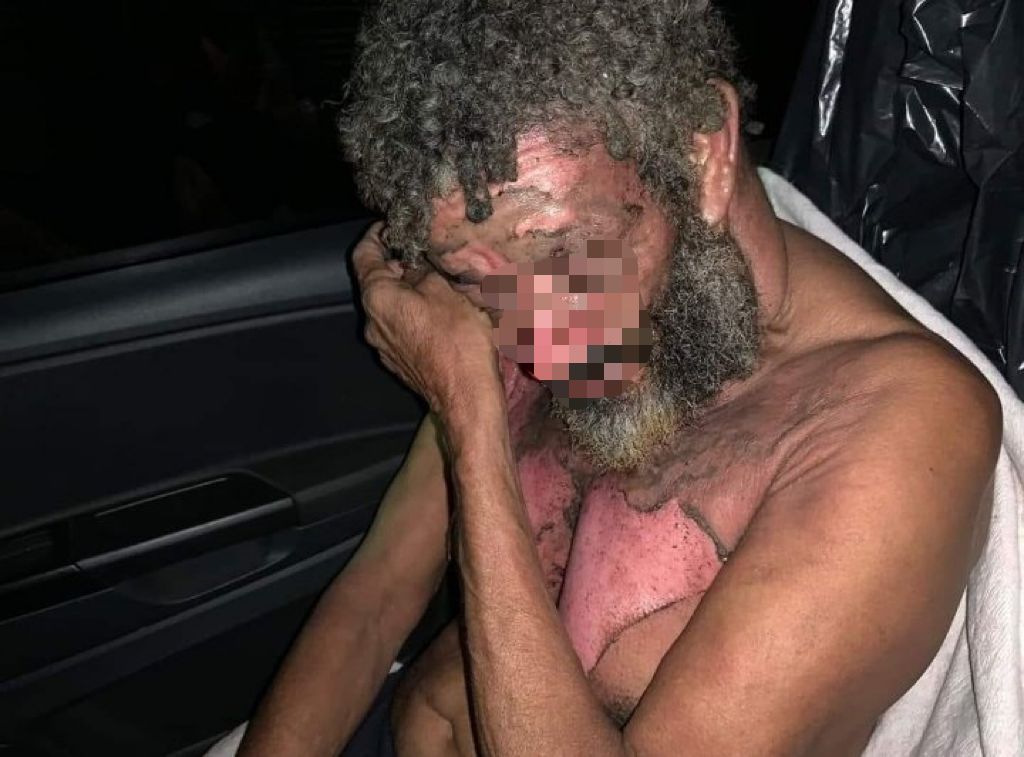 Morador de rua queimado em Nova Iguaçu (Foto: Reprodução)