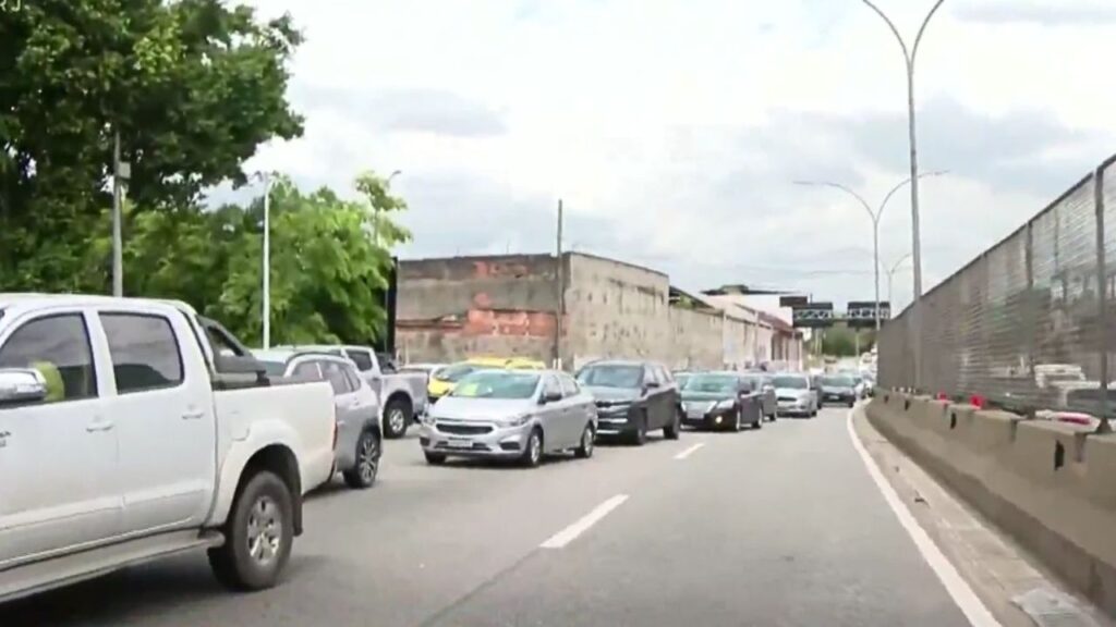 Barricada com ônibus fecha trecho da Linha Amarela na altura da Maré