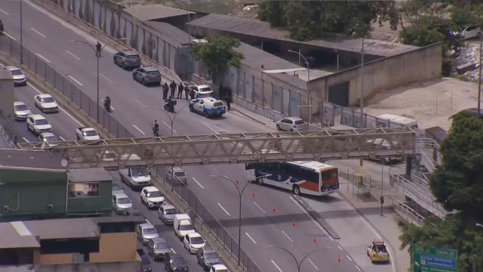 Após uma operação da Polícia Militar do RJ no Complexo da Maré, na Zona Norte do Rio de Janeiro, nesta quarta-feira (4), bandidos usaram um ônibus como barricada na Linha Amarela, na altura da Maré. A via está parcialmente liberada.