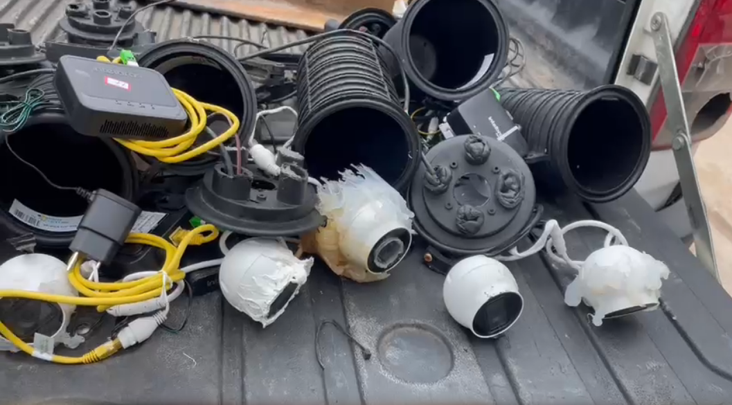 Ao todo, foram encontrados nove dispositivos em postes de energia na comunidade São Leopoldo. Câmeras eram usadas para acompanhar operações da Polícia Militar na região.