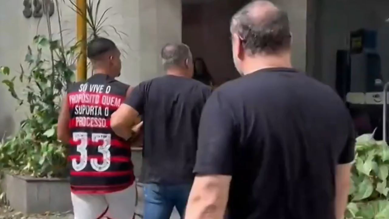 No momento da prisão, o suspeito vestia uma camisa do Flamengo personalizada com a frase: “Só vive o propósito quem suporta o processo” e o número 33 estampado nas costas.