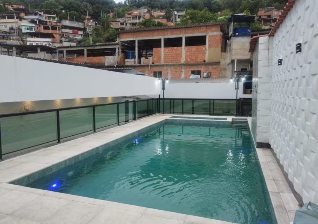 Em um vídeo, é possível ver que o “clube do tráfico” tem direito até a piscina com iluminação de LED, churrasqueira e acabamento de luxo. A casa ainda estava em obras e está localizada no meio da favela.