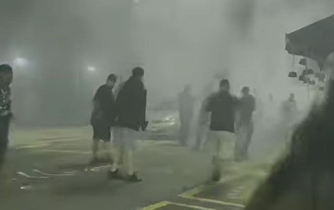 Imagens de câmeras de segurança da rua Aires Saldanha, em Copacabana, mostraram que torcedores do Flamengo entraram na festa da torcida do Fluminense, dando início a uma grande confusão.