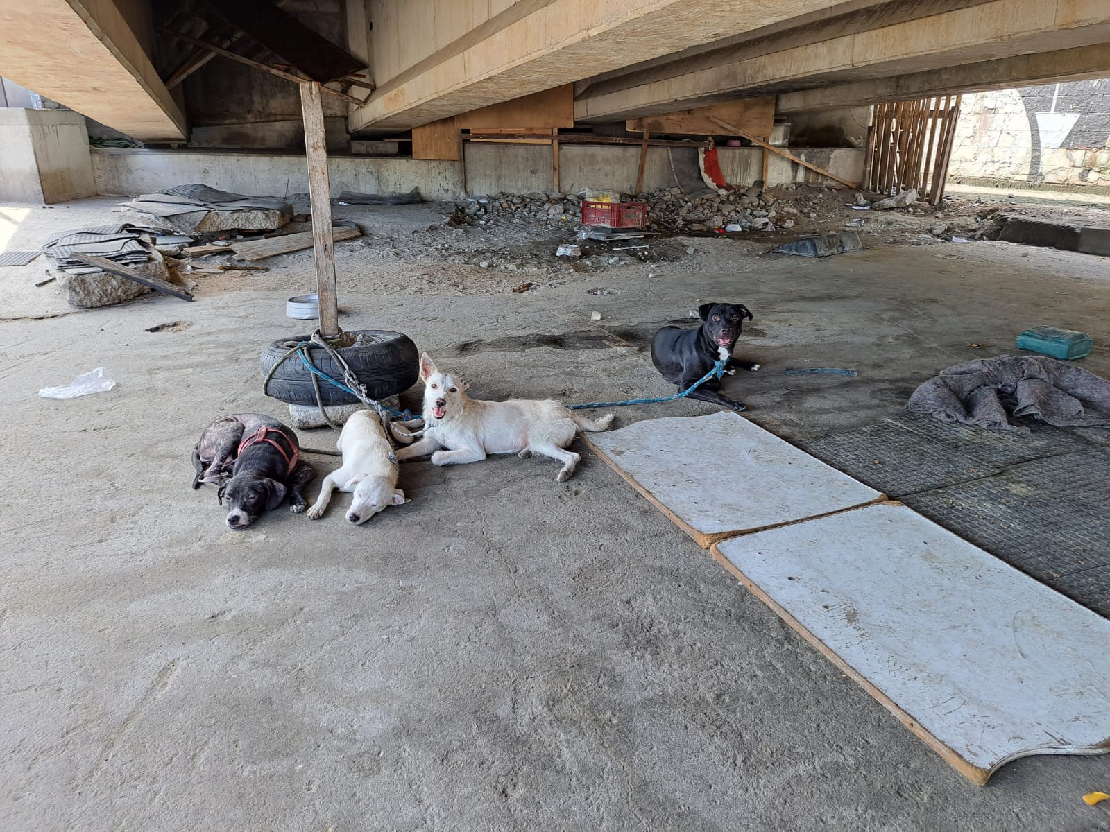 Cães são resgatados amarrados sob viaduto na Avenida Brasil