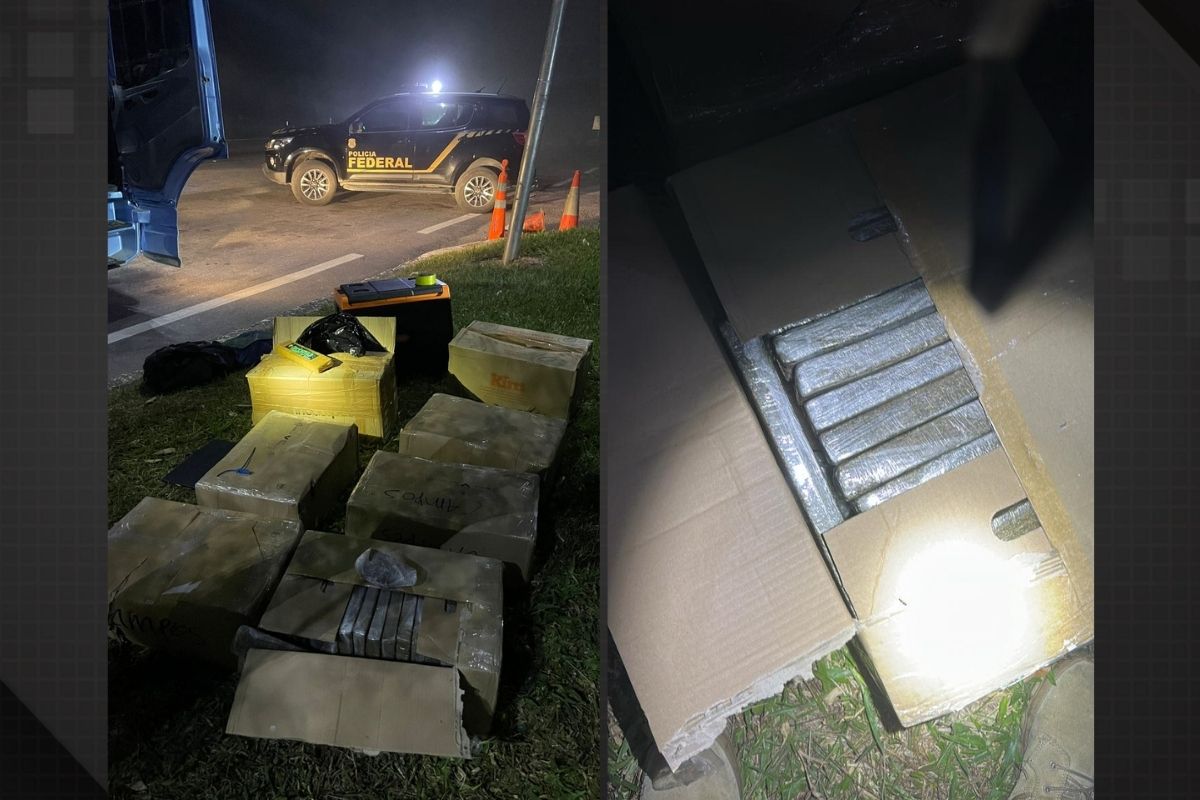 O entorpecente — dividido em tabletes de cocaína, skunk e haxixe — estava escondido na boleia de um caminhão baú e saiu do estado de São Paulo. Segundo a investigação, a carga seria distribuída em comunidades do Complexo do Alemão, na Zona Norte do Rio, área sob influência de facções criminosas armadas.