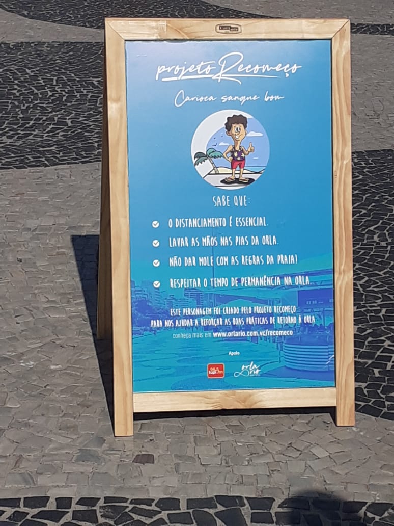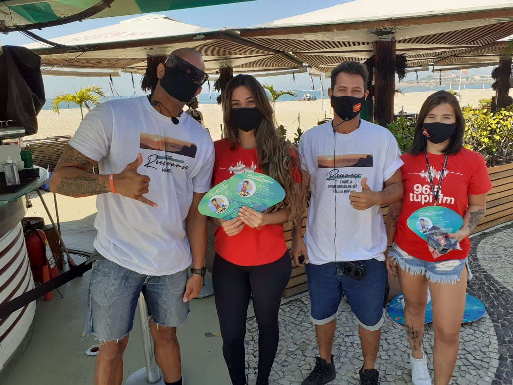 Equipes da Tupi estão nos locais distribuindo máscaras, brindes e álcool em gel para a população. A ação quer estimular a construção de novos hábitos, o uso correto e consciente da praia, para assim, diminuir possíveis riscos de transmissão da Covid-19 entre a população. Na iniciativa, estão presentes também os personagens Carioca Sangue Bom e Zé Furada, criados pela Orla Rio, com o intuito de reforçar as boas práticas de uma forma divertida.