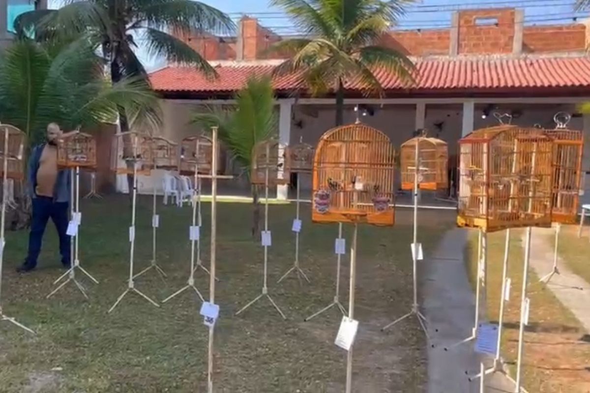 Além disso, as aves estavam em gaiolas pequenas, o que caracteriza maus-tratos. Também foram apreendidos troféus e medalhas usados para premiar os pássaros que mais cantavam no torneio ilegal.