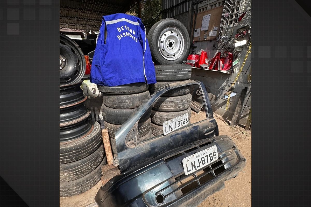 Operação Desmonte flagra autopeças de carros furtados e de luxo sem nota fiscal em Campo Grande, na Zona Oeste do RioAgentes da Operação Desmonte interditaram, nesta quarta-feira (30), um ferro-velho irregular em Campo Grande, na Zona Oeste do Rio. O local, sem registro no Detran RJ, armazenava peças de carros de luxo sem nota fiscal e partes de um veículo furtado, incluindo placa, porta e para-choque de um Fiat Palio 2001, roubado em dezembro passado na mesma região.