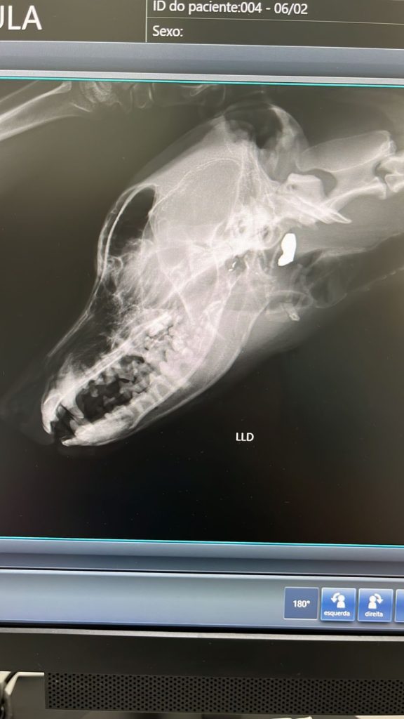 Durante cirurgia de emergência, o projétil não foi removido para não pôr em risco a vida do animal ou causar lesões em nervo, o que, segundo os veterinários responsáveis, poderia paralisar seus membros