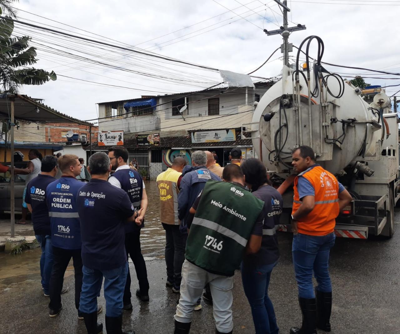 A Defesa Civil atua no local com 12 agentes e apoio de 29 Guardas Municipais, além de um caminhão aberto para auxiliar na retirada dos materiais descartados. Já a Fundação Rio Águas promove a limpeza e a dragagem com quatro escavadeiras, duas retroescavadeiras, um flutuante, nove caminhões e 12 agentes. A Comlurb disponibilizou quatro basculantes e 10 garis, além de uma pá carregadeira para remover os bens inservíveis que forem descartados pelos moradores.