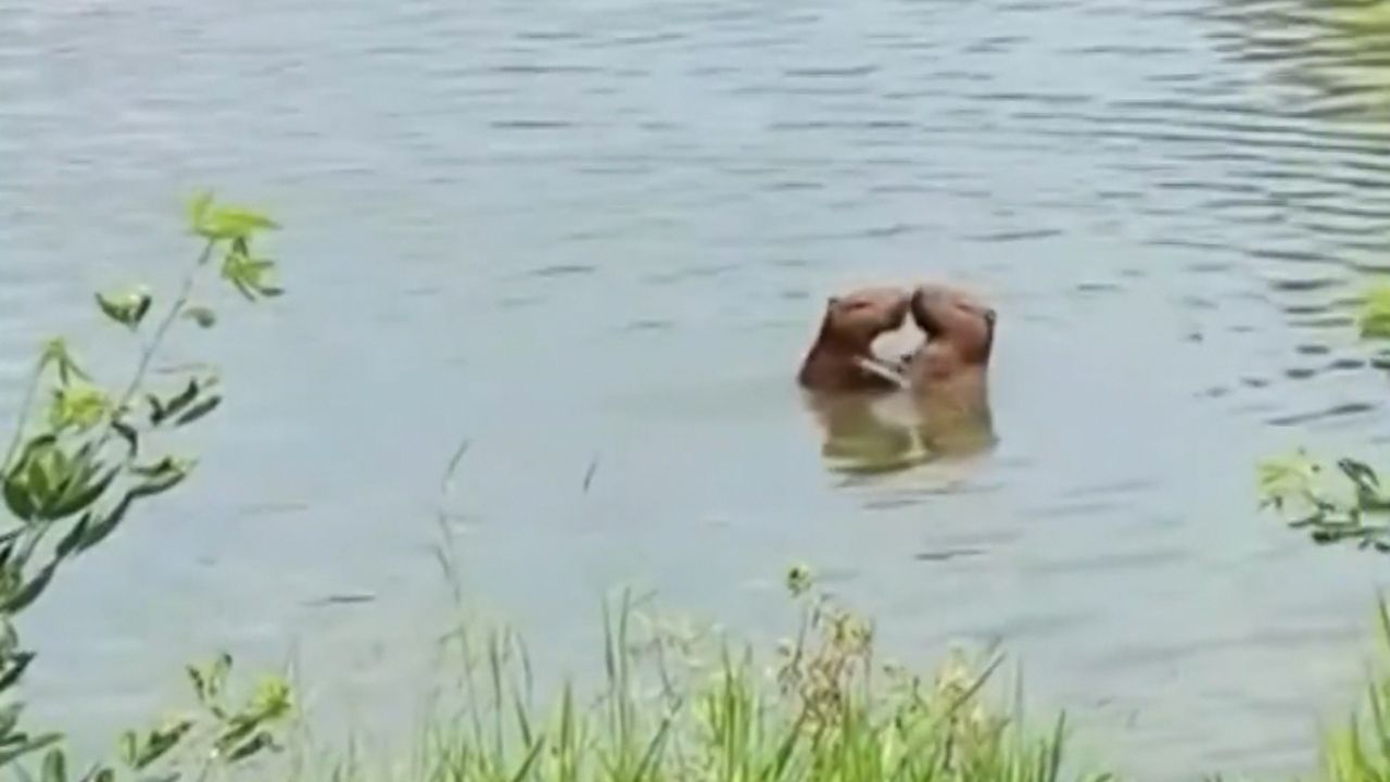 Capivaras são flagradas em ‘namoro’ no lago em Seropédica e víde viraliza
