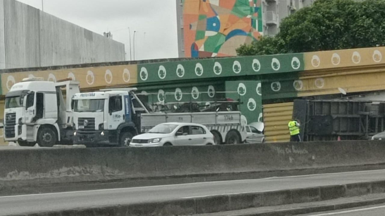 Carreta tomba no Caju e bloqueia Avenida Brasil por mais de cinco horas