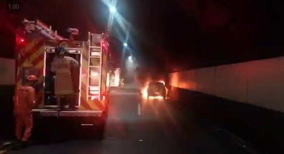 Carro em chamas fecha Túnel Rebouças e desvia trânsito no Rio