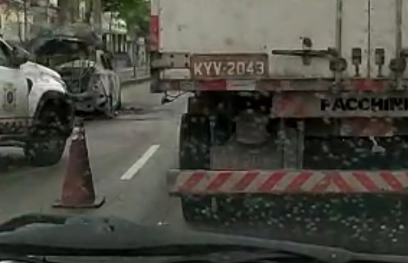 Por conta do acidente, o trânsito na via ficou bastante complicado, como mostra o vídeo abaixo: