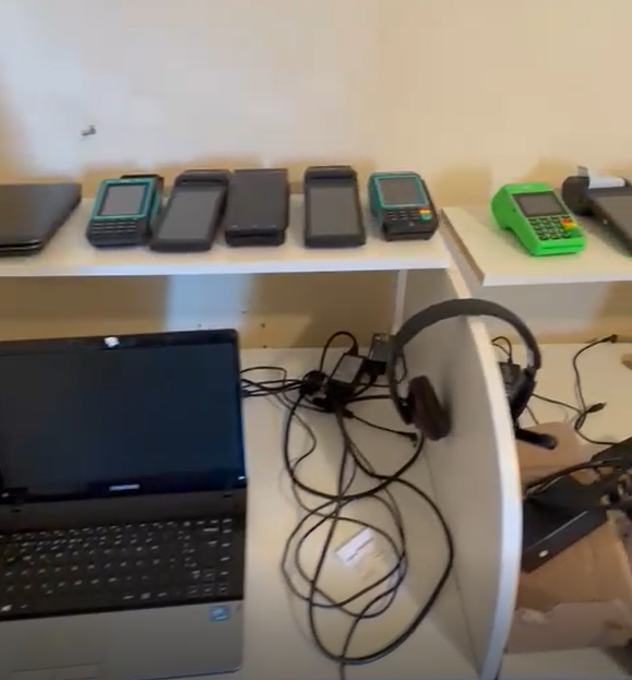 O local funcionava como um escritório com oito notebooks e dezenas de máquinas de cartão.