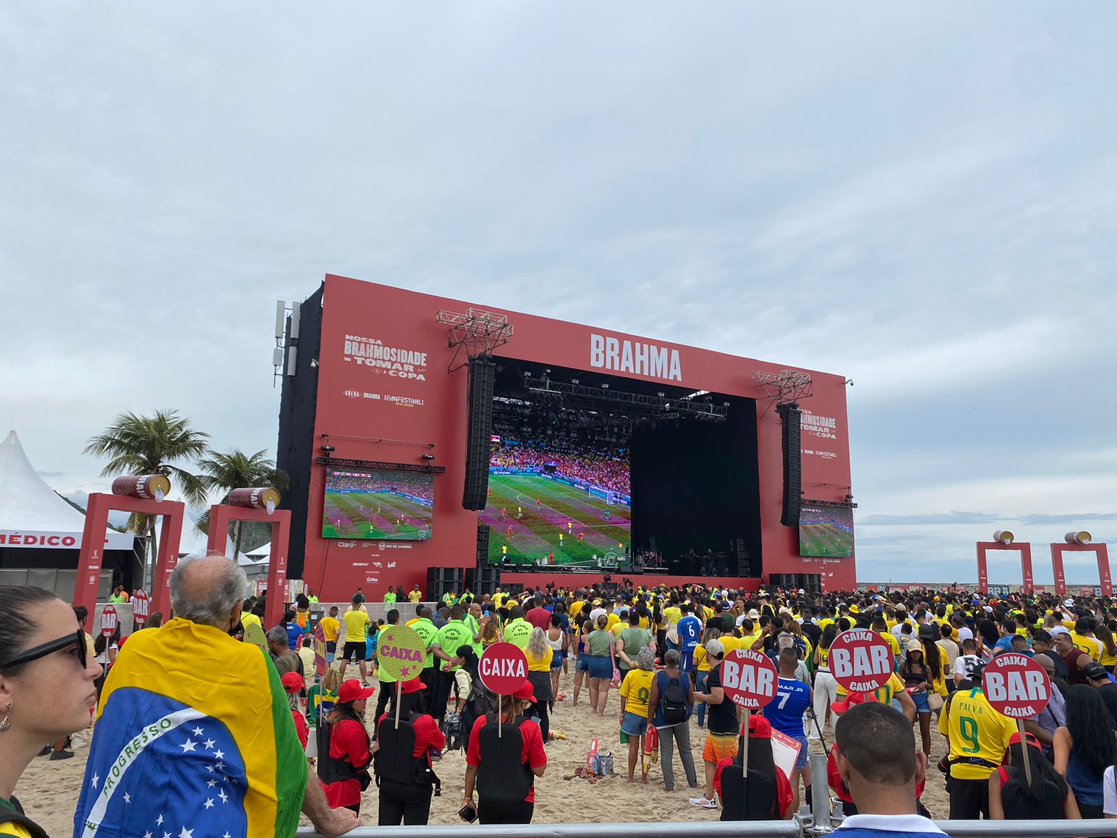 Pelo menos, dez mil pessoas, devem acompanhar Brasil x Suíça, na Arena Fifa Fan Fest, montada na areia da praia de Copacabana.