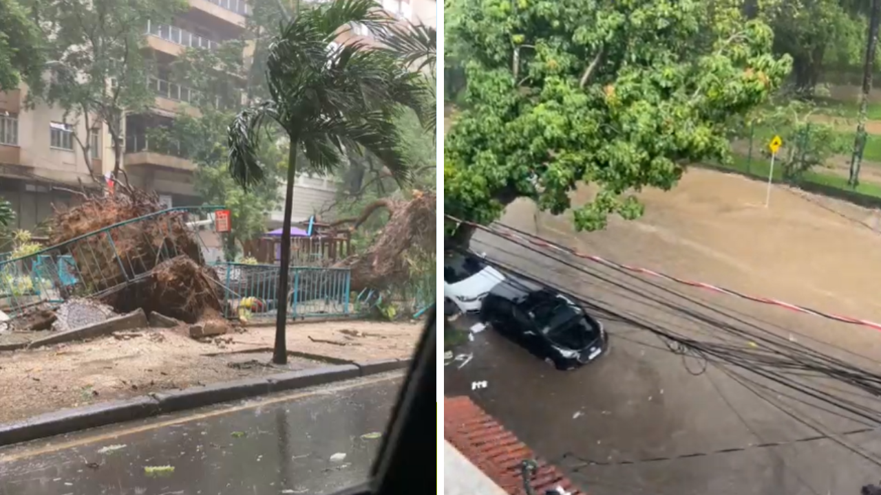 O temporal provocou a queda de uma árvore na pracinha do Largo dos Leões, no Humaitá, Zona Sul da cidade. Um flamboyant, que decorava o parquinho infantil, foi derrubado pelos ventos intensos.