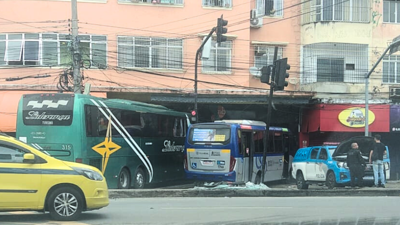 Sete pessoas ficaram feridas após dois ônibus colidirem e entrarem em uma loja, na manhã deste domingo (15), no bairro da Abolição, na Zona Norte do Rio. As autoridades foram acionadas às 7h40.