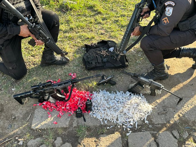 Segundo a Polícia Militar, dois fuzis e uma pistola foram apreendidos na Comunidade César Maia, em Vargem Pequena, na Zona Oeste, neste sábado, durante uma ação do batalhão da Barra da Tijuca que prendeu seis criminosos após um intenso confronto armado. Rádios comunicadores e drogas também foram apreendidos na ocorrência que está em andamento.