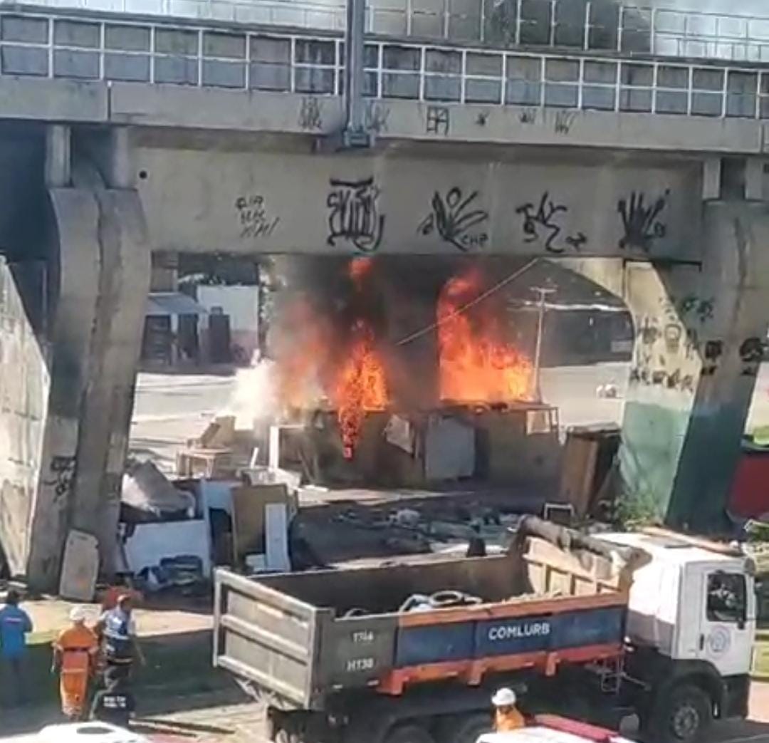 Durante a ação, usuários de drogas atearam fogo em barracos que estavam prestes a ser demolidos pela equipe de segurança