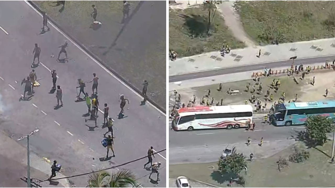 Mais de 200 torcedores do Peñarol foram presos após tumulto na orla do Recreio, no Rio. Confronto começou após furto de celular e causou destruição na área