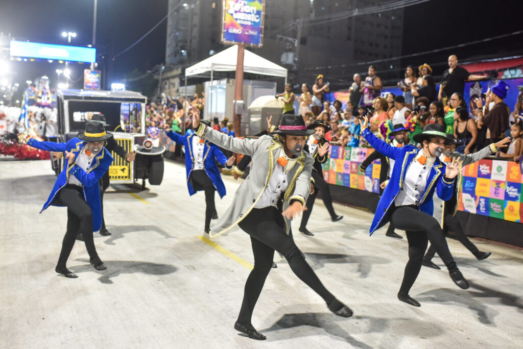 Em seguida, a Unidos da Vila Santa Tereza trouxe para a avenida o enredo “Vila Santa Tereza Não Marca Bobeira e Festeja os 65 Anos do Cacique de Ramos”. Inspirada no verso eternizado pela cantora e compositora Beth Carvalho, a escola conta a trajetória de um dos maiores símbolos da cultura popular e do samba carioca.