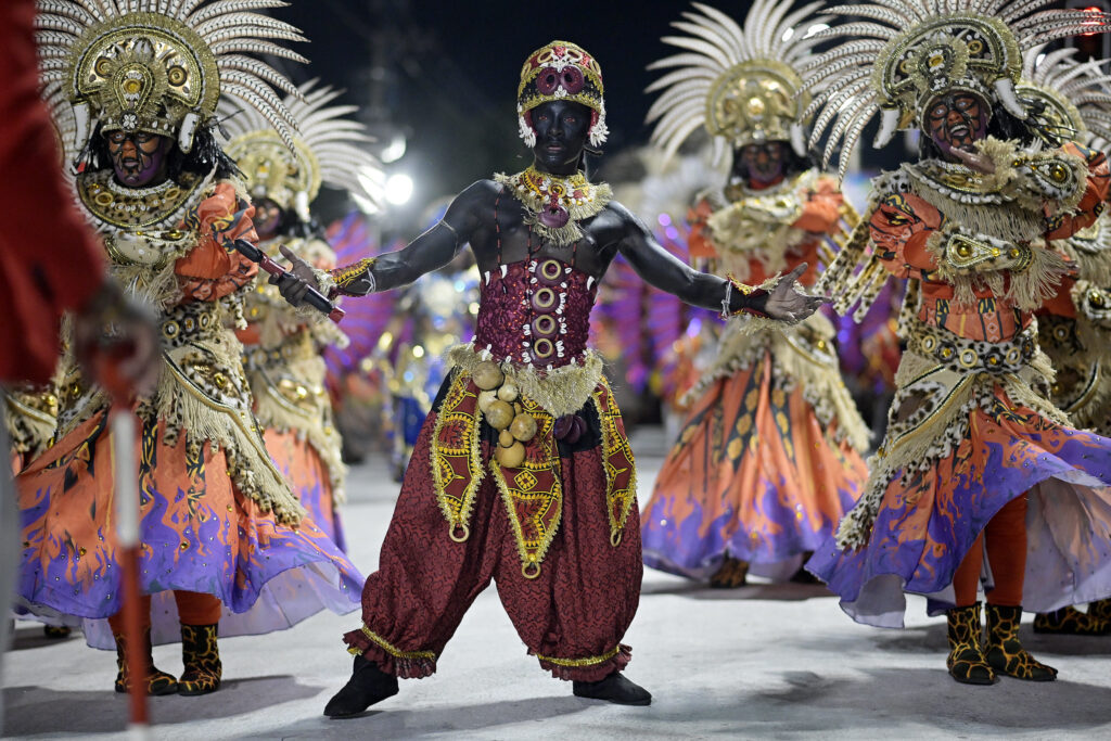 A Acadêmicos de Santa Cruz desfilou com o enredo “Brasil de Mil Faces num Só Coração” e levou ao público um convite a uma imersão na história e na cultura do nosso país, celebrando sua complexidade e a inabalável resiliência de seu povo.