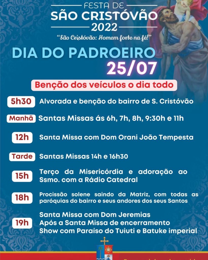 Dia de São Cristóvão é marcado por extensa programação na igreja do padroeiro dos motoristas e viajantes