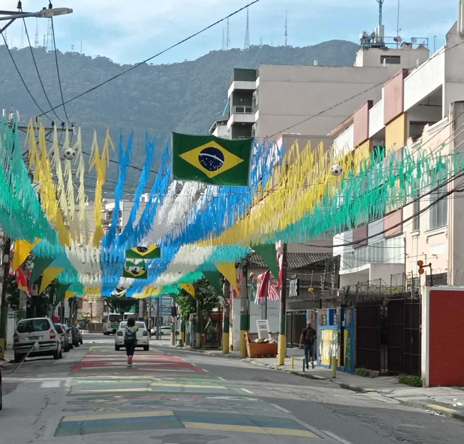 Era raro ver uma rua sem enfeites, hoje, em dia, tem que procurar bastante para achar uma rua enfeitada para a Copa.