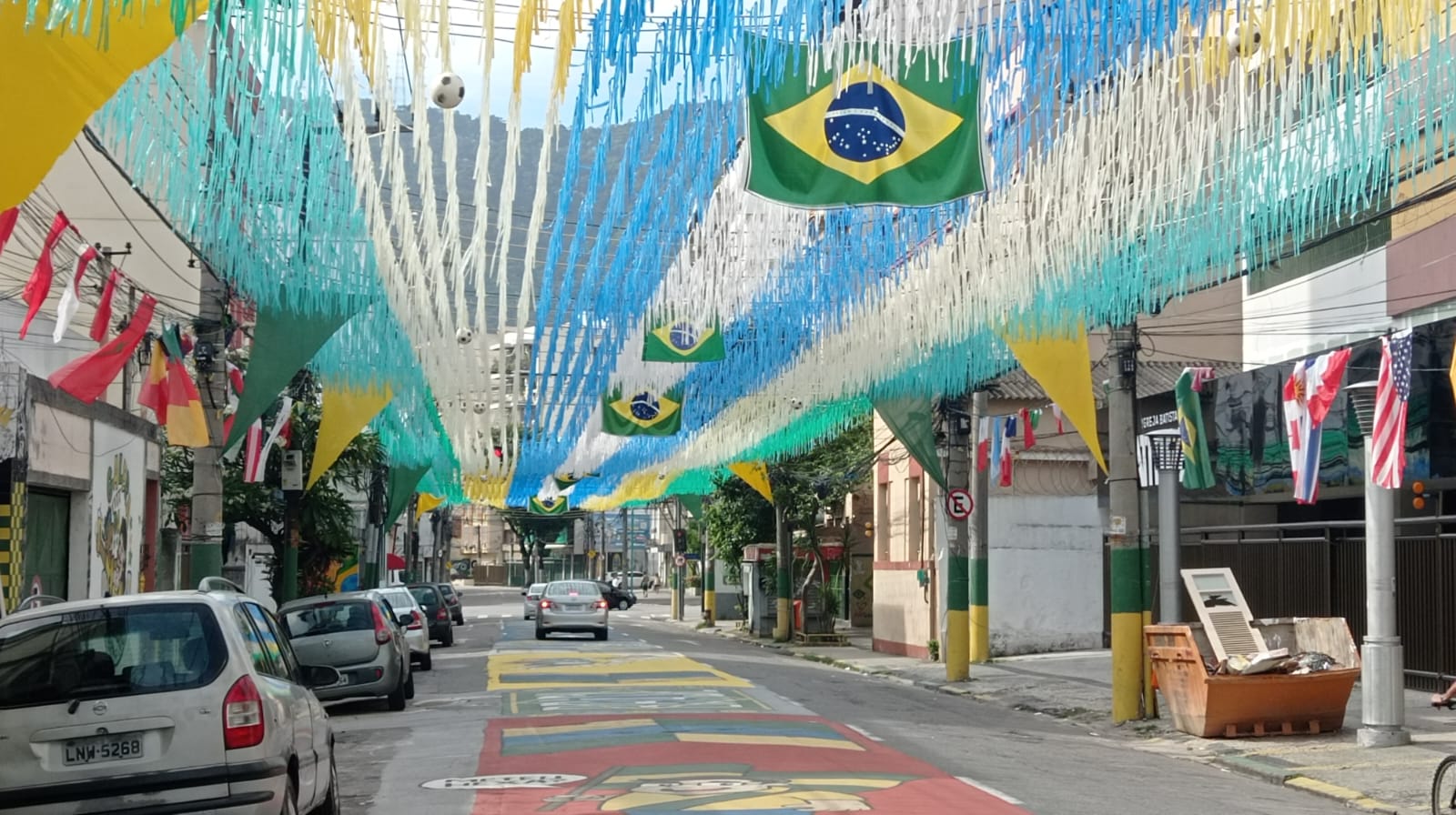 Diferente de outros pontos do Rio, tijucanos se animam e enfeitam ruas para a Copa do Mundo