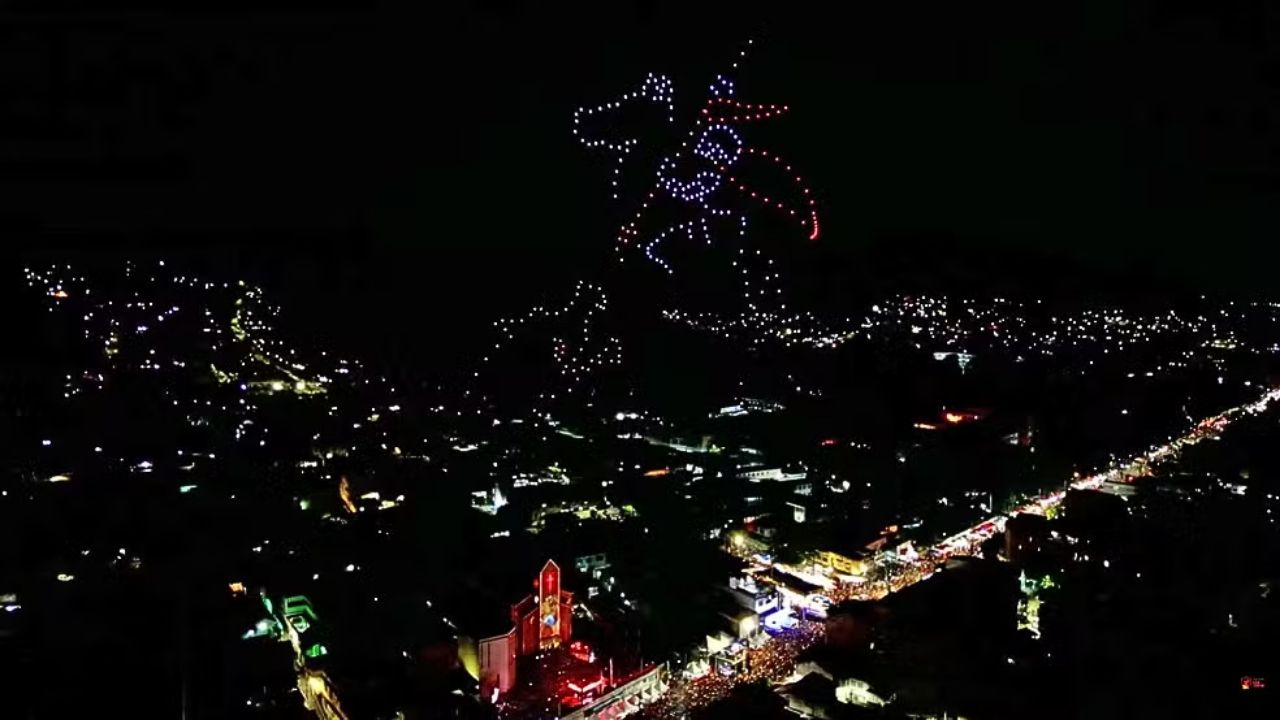 O céu de Quintino amanheceu iluminado por um show de drones em homenagem ao dia de São Jorge.