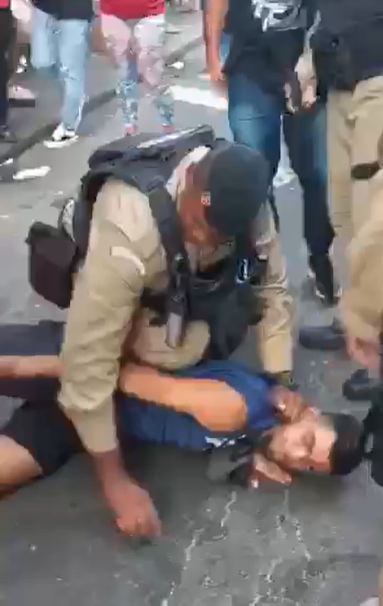 Nas imagens, é possível observar Renato conversando com os agentes antes de ser agredido, jogado no chão e imobilizado.