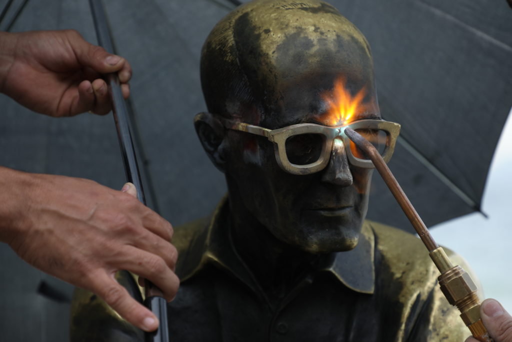 Estátua de Carlos Drummond de Andrade tem os óculos recolocados