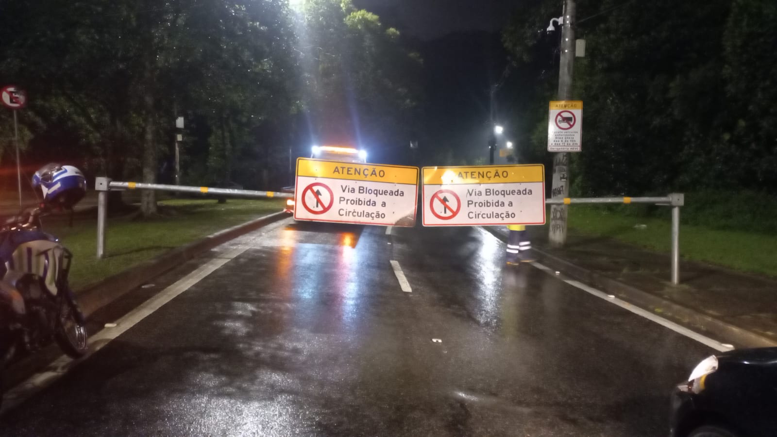 Bloqueio na via no Sentido Grajaú foi necessário pelo risco de deslizamentos na estrada.